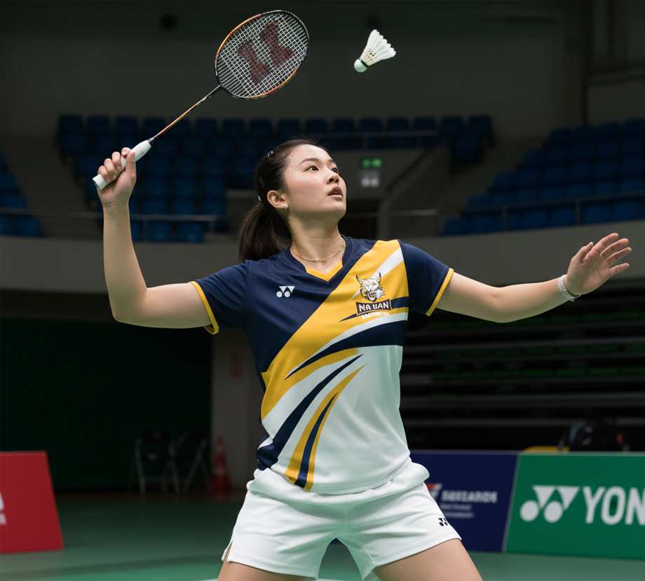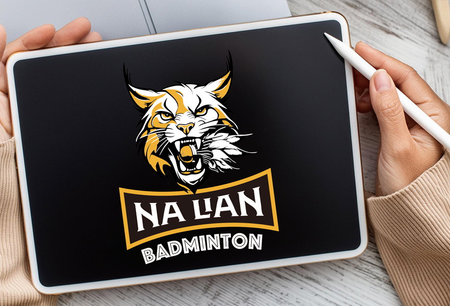 品牌logo識別構成上,山貓張口銜住羽球羽毛的動態造型,將野生動物的兇猛銳氣與羽球運動的輕捷感融為一體。線條設計銳利流暢,透過立體層次與明暗對比,強化山貓頭部的立體感與力量感;銜住羽毛的動作,既象徵球隊對勝利的渴望,也暗喻「以速度與技巧掌控比賽」的競技哲學。整體造型兼具野性美與運動美,讓觀者一眼就能感受到球隊的戰鬥意志。