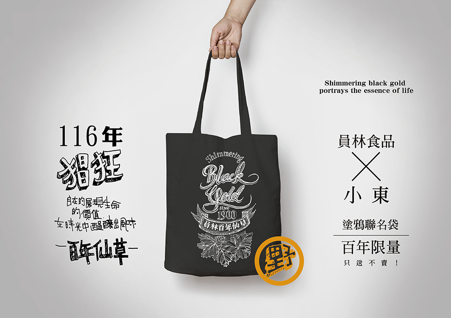 設計師-小東,為百年仙草員林食品打造獨一無二"黑裡透金"塗鴉聯名袋
