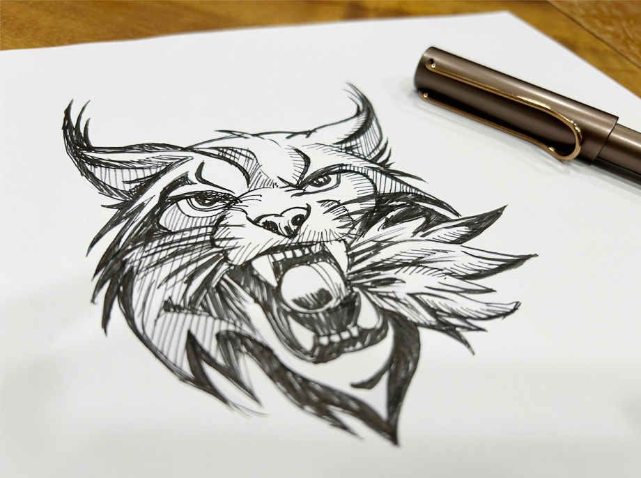 品牌logo識別構成上,山貓張口銜住羽球羽毛的動態造型,將野生動物的兇猛銳氣與羽球運動的輕捷感融為一體。線條設計銳利流暢,透過立體層次與明暗對比,強化山貓頭部的立體感與力量感;銜住羽毛的動作,既象徵球隊對勝利的渴望,也暗喻「以速度與技巧掌控比賽」的競技哲學。整體造型兼具野性美與運動美,讓觀者一眼就能感受到球隊的戰鬥意志。